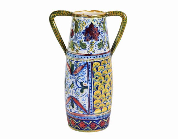 Brocca a due anse in maiolica lustrata di Gualdo Tadino