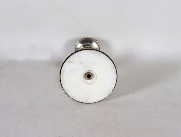 Candeliere in argento cesellato e sbalzato con campana in cristallo gr. 150
