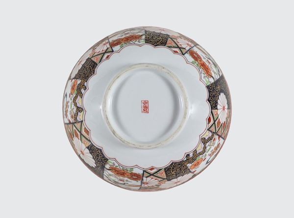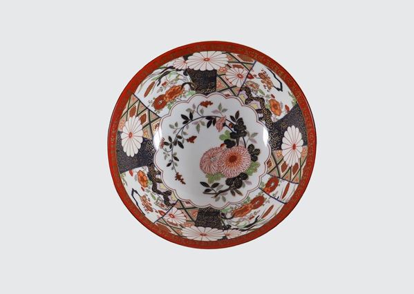 Ciotola cinese per riso in porcellana decorata e variopinta a motivi di fiori orientali