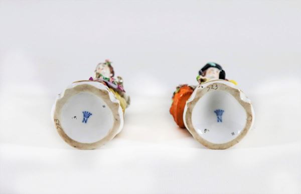 Coppia di statuine in porcellana policroma Capodimonte "Contadinelli"