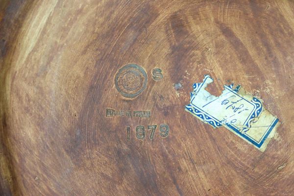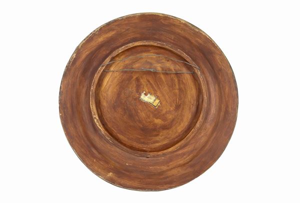 Grande piatto da muro detto "compendiario" in maiolica decorata a finto bronzo