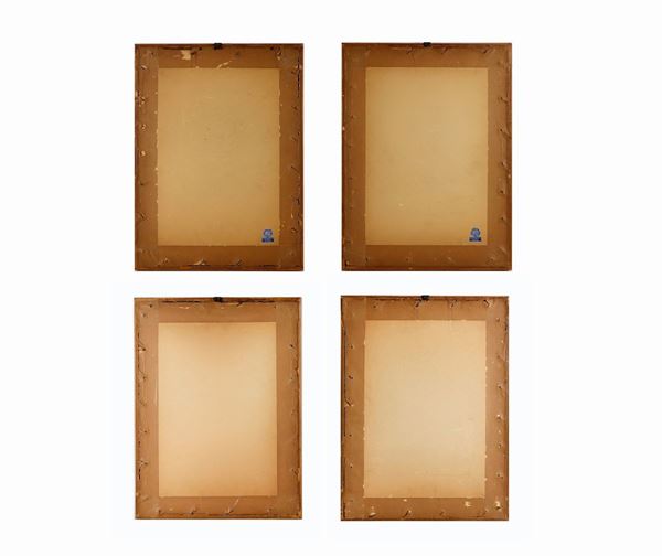 Lotto di quattro antiche piccole stampe giapponesi "Scene di vita orientale con personaggi"