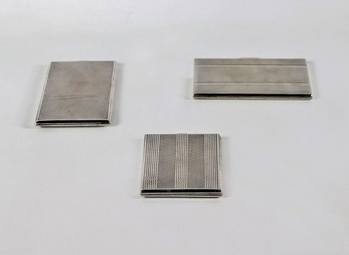 Lotto di tre portasigarette in argento cesellato e sbalzato gr. 390