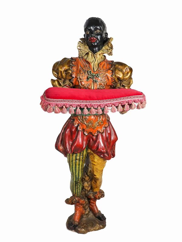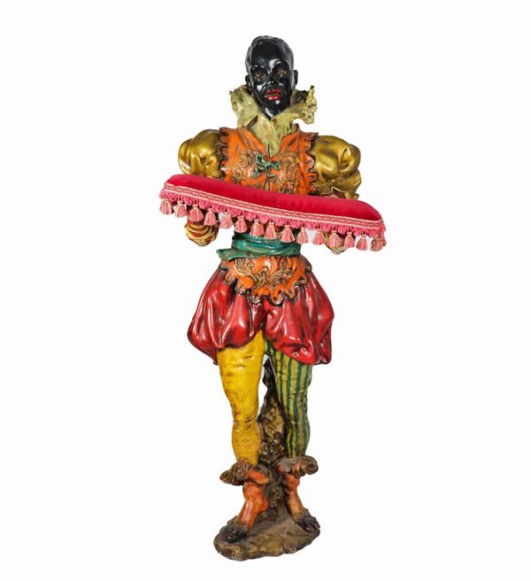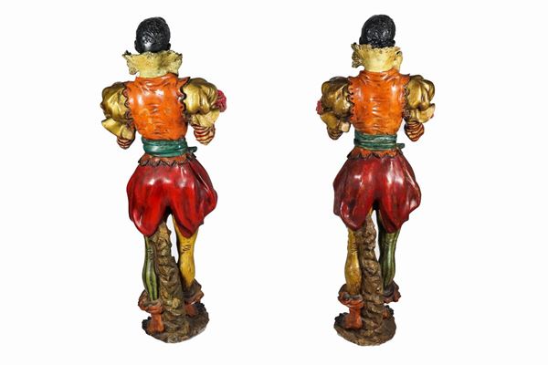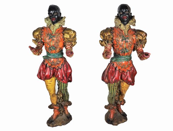 "Moretti Veneziani" coppia di sculture in terracotta smaltata, patinata e policromata