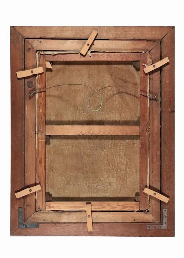 di ottima esecuzione pittorica. Cornice in legno dorato con supporto in legno di noce, cm 85 x 60.