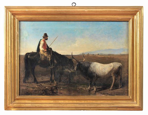 "Paesaggio con buttero e bufala" dipinto ad olio su tela di ottima esecuzione pittorica