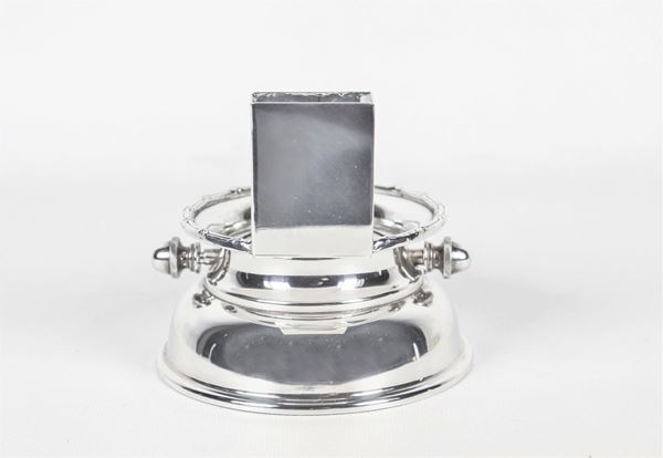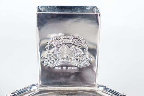 Posacenere cinese per pipe da oppio in metallo argentato completo di portafiammiferi