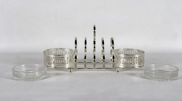 con portatoast centrale e vaschette laterali in cristallo portaburro e portamarmellata, cm 29 x 9,5 x 13,5 h.