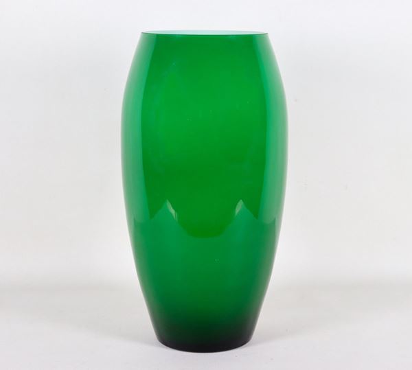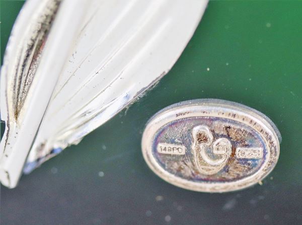 Vaso in vetro soffiato di Murano verde smeraldo con applicazioni di fiori e foglie in argento 925