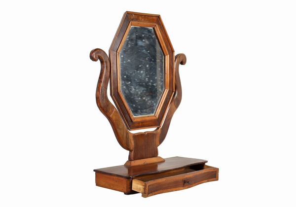Antico specchio da toletta Luigi Filippo, in legno di noce e bosso