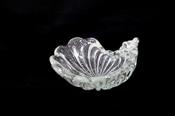 Conchiglia in vetro soffiato di Murano trasparente con lavorazione a bolle