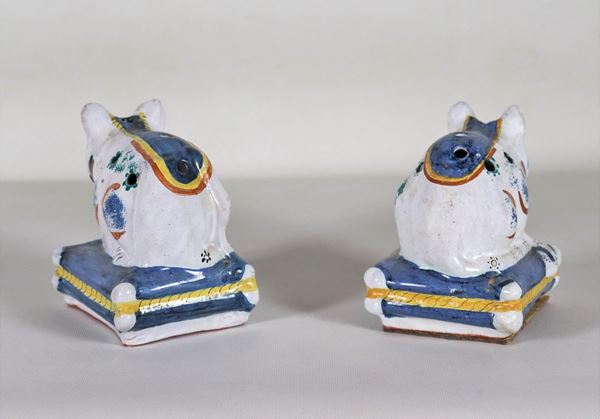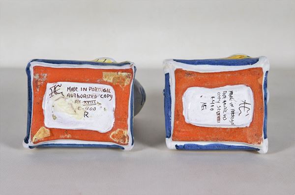 Coppia di gattini portafiori in ceramica portoghese policroma e smaltata