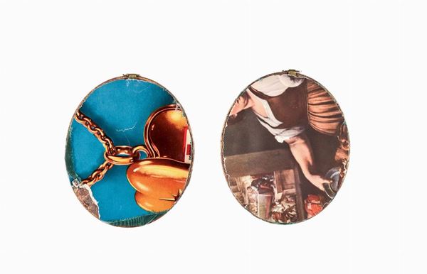 Coppia di miniature ovali dipinte "Ritratti di giovani dame". Firmate