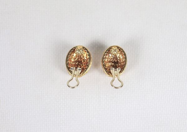 Coppia di orecchini in oro giallo a forma ovale bombata, gr. 18,1