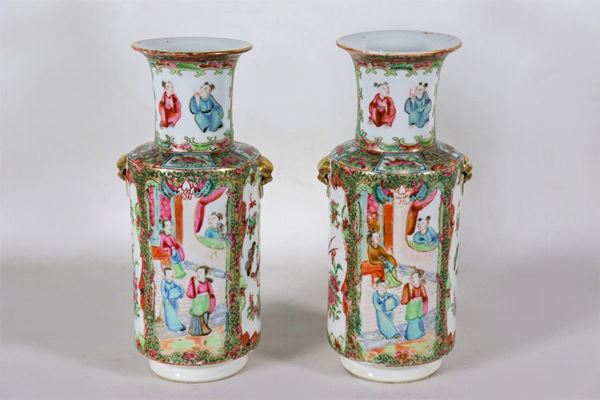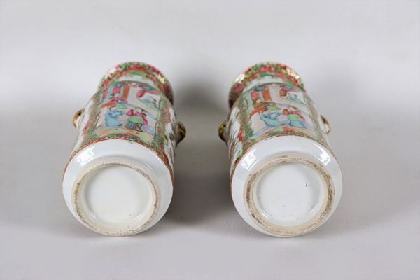 a motivi di scene di vita, fiori e uccelli esotici. Diametro cm 12 x 25,5 h ciascuno.
