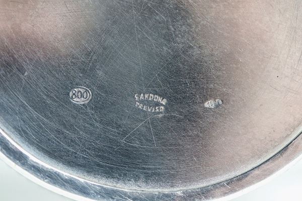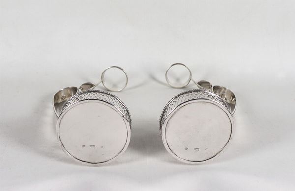 Coppia di portabottiglie in argento cesellato e sbalzato a motivi Impero, gr 480