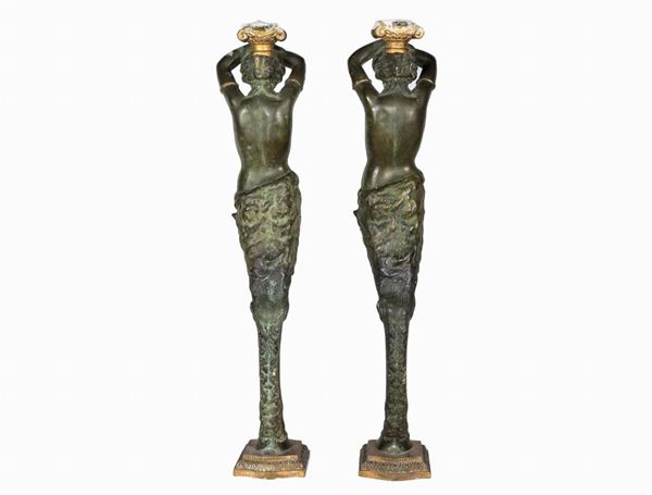 Coppia di sculture in bronzo con capitelli dorati "Cariatidi"