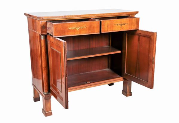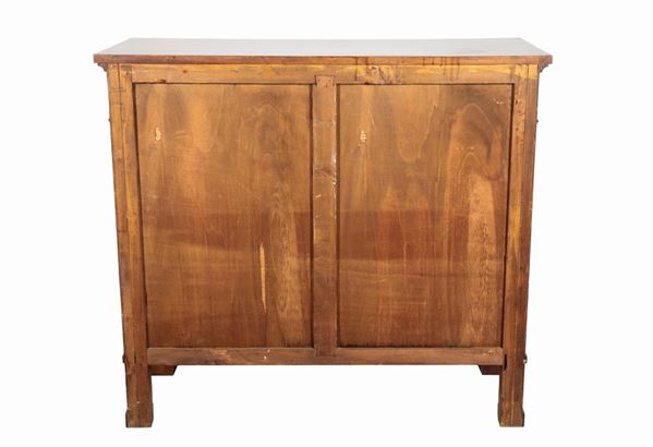 Credenza toscana di linea Impero in noce con intarsi in metallo dorato