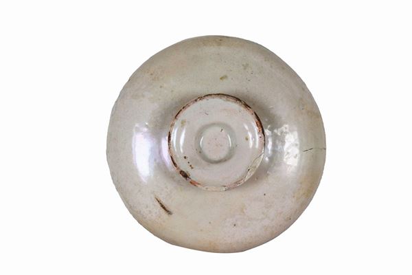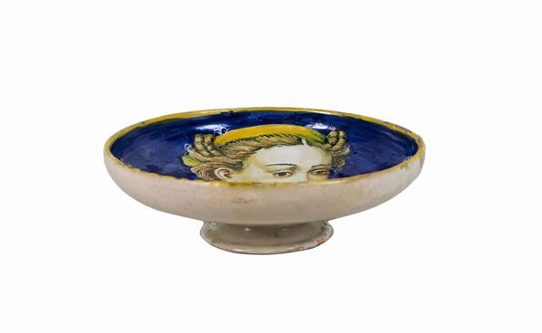Crespina in maiolica smaltata di Casteldurante, con al centro dipinto "Ritratto di giovane donna"
