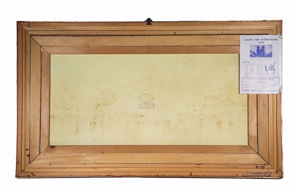 Firmato. "Veduta di strada parigina con il Pantheon sullo sfondo", dipinto ad olio su tela