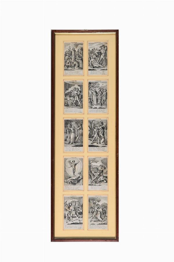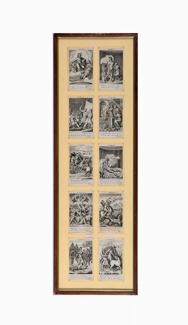 "I Canti della Gerusalemme Liberata", venti piccole antiche incisioni, racchiuse in due pannelli in cornice