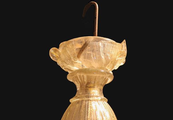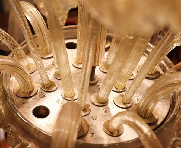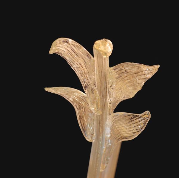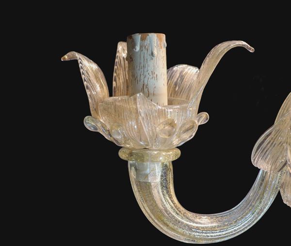 Lampadario in vetro soffiato di Murano trasparente con fiori e foglie, 6 luci