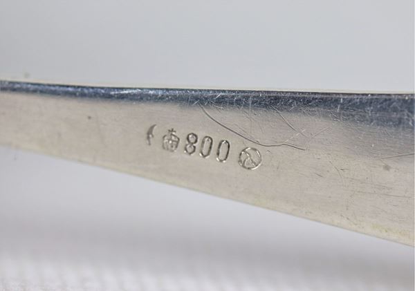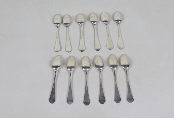 Lotto di dodici antichi cucchiaini da tè in argento cesellato, gr. 198