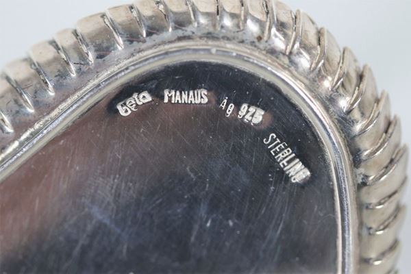 Lotto di nove statuine sud americane "Aironi, pappagalli e lumaca", in varie pietre dure e argento Sterling 925