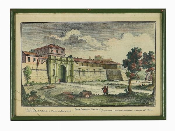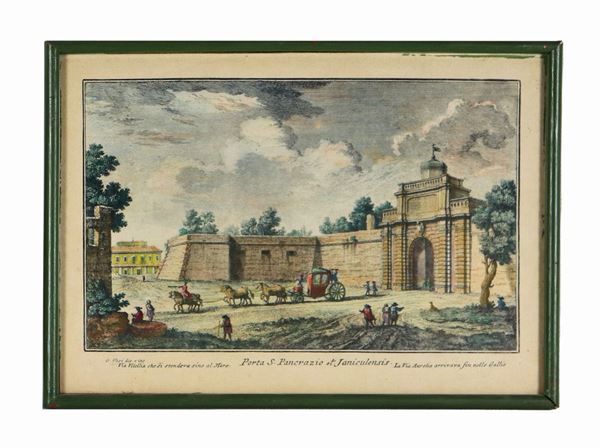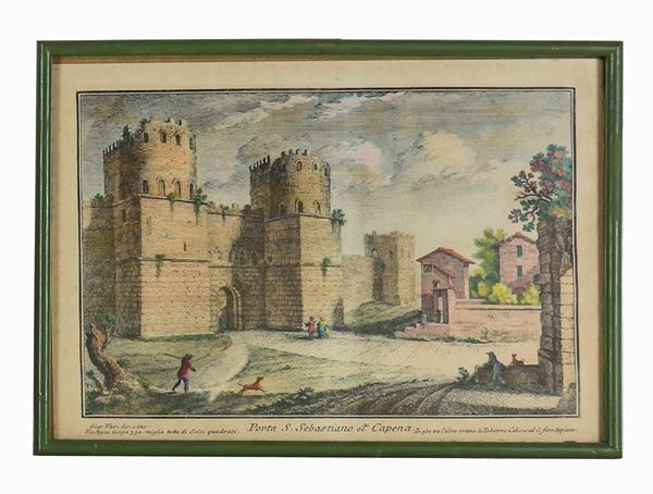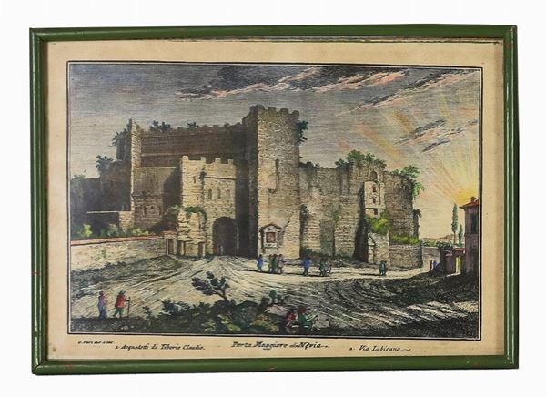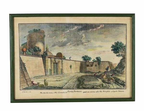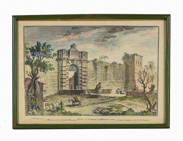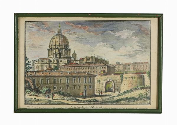 Lotto di quattordici stampe colorate 'Vedute di Roma con monumenti'