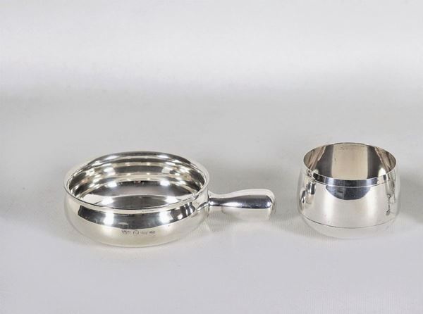 Lotto in argento di una ciotola e un pentolino con manico firmato Brandimarte, (2 pz) gr 195