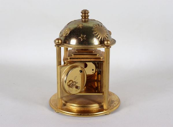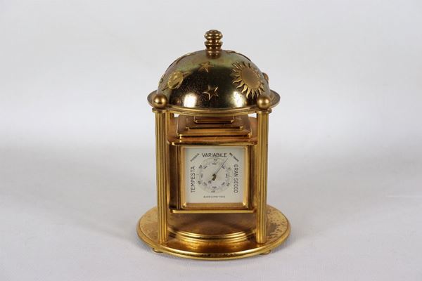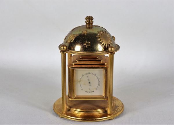 Orologio da tavolo a tempietto "Cubo" in ottone pieno, Marca Angelus - Swiss, con quattro quadranti: orologio sveglia, barometro, termometro [..]