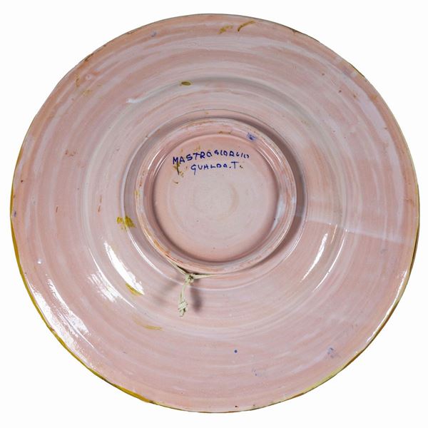 Piatto da parata in maiolica lustrata Gualdo Tadino a varie policromie, al centro "Volto di nobildonna"