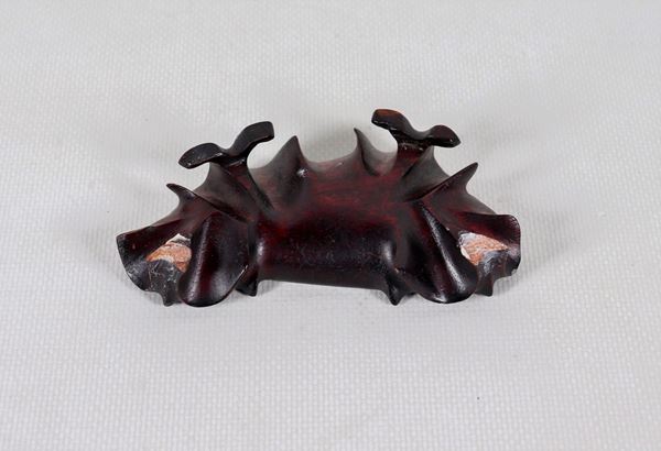 lieve difetto alla base del Buddha e difetti alla basetta in teak di sostegno, cm 10 x 6 x 5 h esclusa basetta.