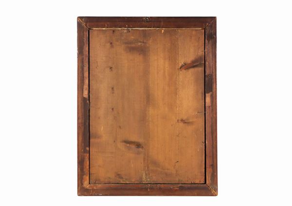 cornice in radica di tuja. Il dipinto presenta cadute di colore, cm 58,5 x 44.