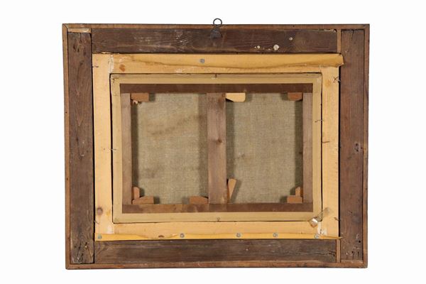 antica cornice in legno ebanizzato e dorato con passepartout, cm 40 x 56,5.