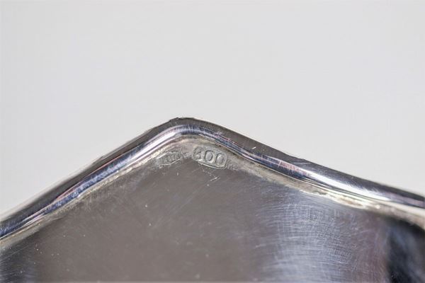 Portagrissini in argento con manico, sorretto da quattro piedini a cerchio, gr. 230