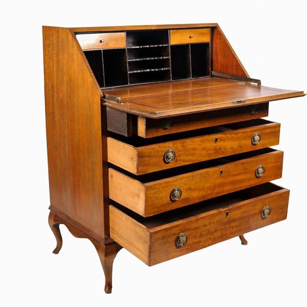 calatoia formante scrittoio e comparti all'interno, quattro tiretti sottostanti e quattro gambe ricurve, cm 77 x 47 x 100 h.
