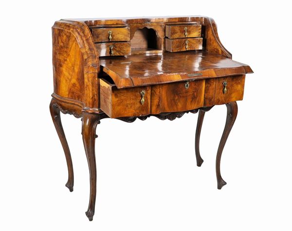 Ribalta veneta di linea Luigi XV in noce e radica di noce