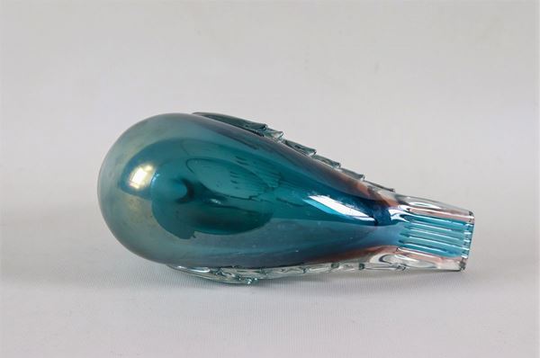 Scultura "Colomba" in vetro soffiato di Murano blu madreperlato