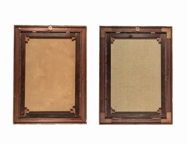 cornici in legno dorato ed intagliato, cm 100 x 70 ciascuna.