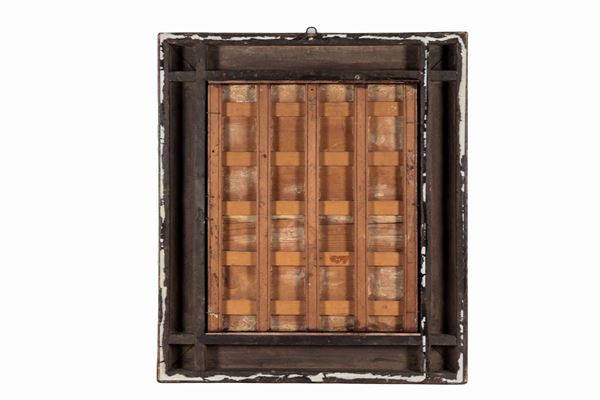 antica cornice in legno dorato e decorato. La tavola presenta difetto, cm 57,5 x 48.