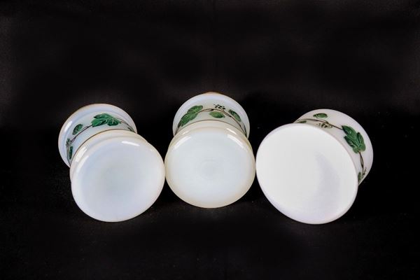 Set da toletta in opaline bianca, con decorazioni in verde a motivi di foglie (3 pz)