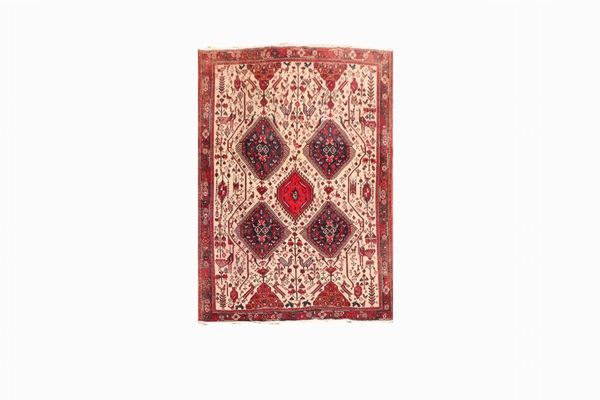 Tappeto persiano Kazak a motivi geometrici su fondo avana, m 2,18 x 1,65