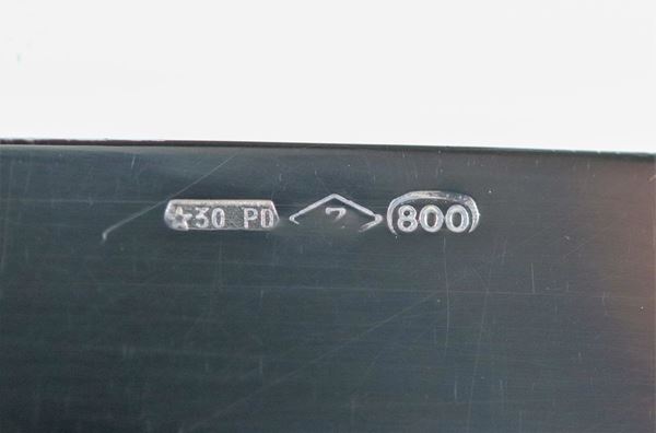 Vassoio ovale da portata in argento con bordo filettato, gr. 1140