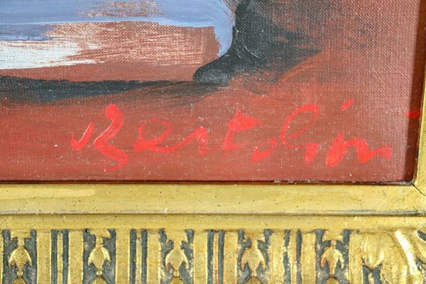 Firmato e datato 1970 sul retro della tela, cornice dorata.