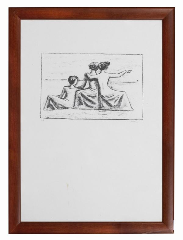 "Tre ragazze" Prova d'autore litografia cm 50 x 34
