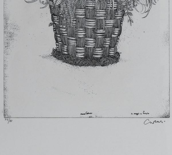 Firmata. "Cesto con fiori" litografia su carta multiplo 75/80 cm 40 x 30