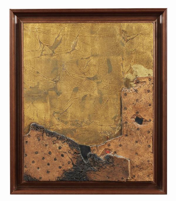 Firmato sul retro della tavola. "Collage e sughero su tavola" tecnica mista cm 60 x 50
