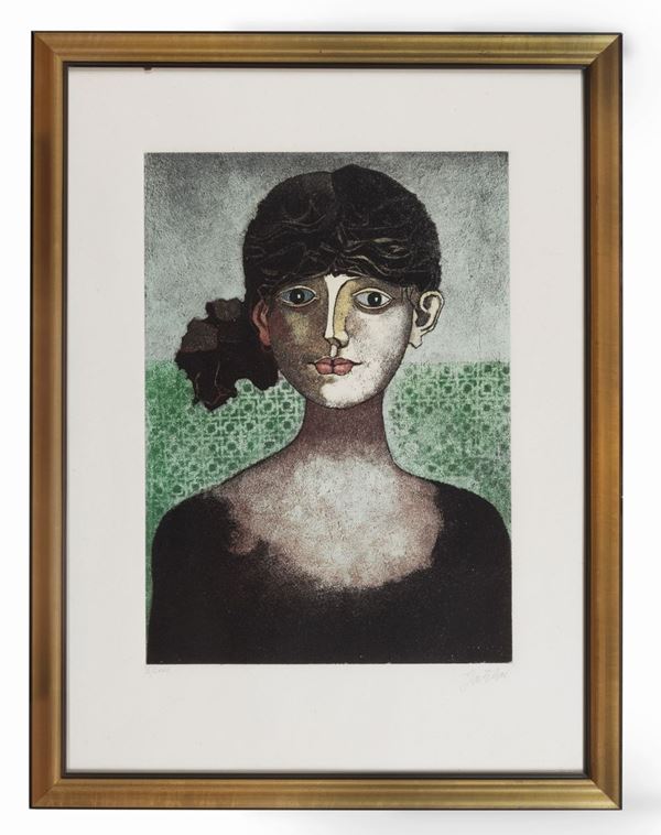 Firmata. "Volto di ragazza" litografia a colori su carta multiplo III/LXXV cm 54 x 39