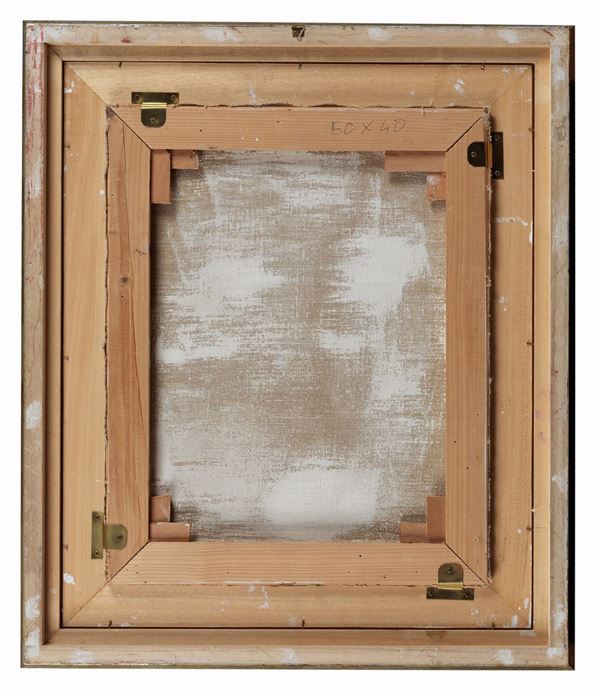 Autentica dell'Archivio Generale delle Opere di Riccardo Licata su fotografia del dipinto. Cornice argentata e passepartout.